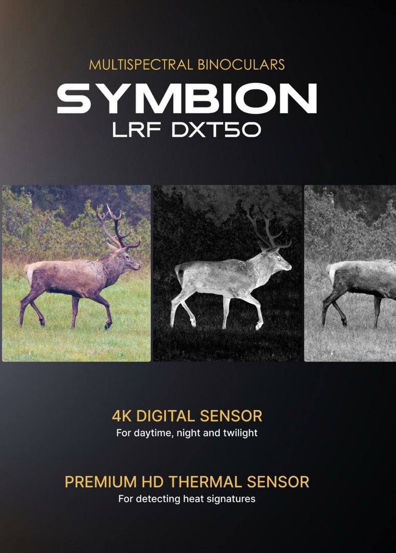 Die Symbion LRF Wärmebildferngläser sind in zwei Modellen erhältlich: DXT50 und DXR50. Sie kombinieren einen 4K-Digitalsensor für klare Beobachtung bei Tag und in der Dämmerung mit einem hochwertigen Wärmebildsensor zur Erkennung von Wärmesignaturen unter allen Bedingungen.